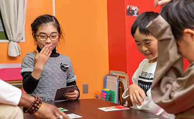 お子様と保護者の方が一緒に楽しめる、温かみのある学習スタイルです。
