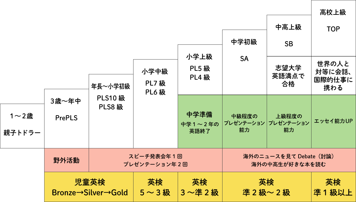 児〜高校生・大人まで英語の一貫適齢教育を行い、英会話の基礎力・学校成績・資格取得・大学就職対策までサポートいたします